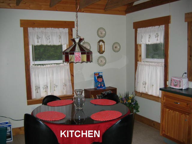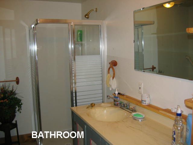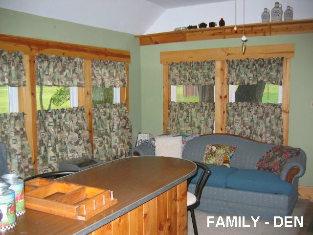 - Kitchen, family-den room with pull-out couch, bathroom with shower.